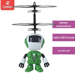 Robozinho Verde Brinquedo Voador Sensor De Mão Luz - Castela DESCRIÇÃO DO PRODUTO