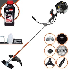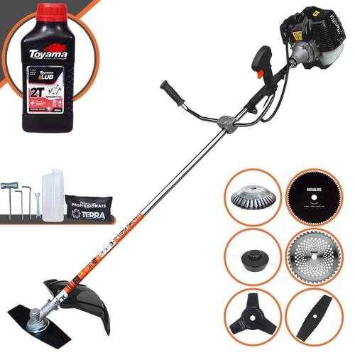 Roçadeira Lateral Terra GRH-520 Black À Gasolina 2 Tempos 52cc 2,5HP + Faca 3 Pontas 255mm 2,9mm + Faca 40 Pontas 255mm 2mm + Faca 80 Pontas 255mm 1,5mm + Escova Rotativa 200mm 38 Cerdas + ÓLEO TOYAMA LUB FG50 500ml 2T