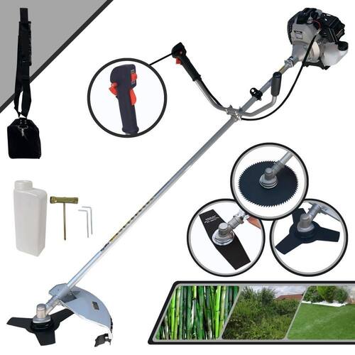 Com guidão ergonômico lateral, permite um alcance amplo e maior mobilidade, capaz de aumentar a produtividade diária. Possui motor 2 tempos á gasolina, de 42,7 Cilindradas, 12.000 de rotação 1,7HP de potência que proporcionam maior performance e economia na operação. Seu conjunto de acessórios inclui kit de ferramentas, cinto de suporte almofadado, carretel de nylon e lâmina de corte 3 pontas.