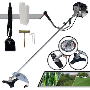 Com guidão ergonômico lateral, permite um alcance amplo e maior mobilidade, capaz de aumentar a produtividade diária. Possui motor 2 tempos á gasolina, de 42,7 Cilindradas, 12.000 de rotação 1,7HP de potência que proporcionam maior performance e economia na operação. Seu conjunto de acessórios inclui kit de ferramentas, cinto de suporte almofadado, carretel de nylon e lâmina de corte 3 pontas.