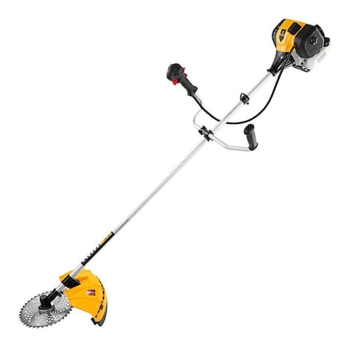Especificações Tipo de motor: a gasolina País de fabricação: China Cilindrada do motor: 33 cm Consumo de combustível: 1.1 L/min Diâmetro máximo do fio: 3 mm Largura de corte com faca: 255 mm Largura de corte com fio: 420 mm Itens Inclusos Roçadeira a Gasolina Denzel DGT-330 Perguntas Frequentes (FAQ) Pergunta: Qual a potência do motor?
