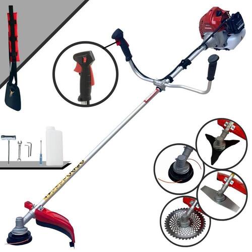 Com guidão ergonômico lateral, permite um alcance amplo e maior mobilidade, capaz de aumentar a produtividade diária. Possui motor 2 tempos á gasolina, de 52 Cilindradas; 2,5HP de potência que proporcionam maior performance e economia na operação. Seu conjunto de acessórios inclui kit de ferramentas, cinto de suporte almofadado, carretel de nylon e lâmina de corte 3 pontas.