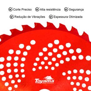 A Lâmina 40 Dentes 255×25,4×2,0 mm Toyama em aço de alta qualidade, com diâmetro de 255 mm, furo central de 25,4 mm com arruela adaptadora para furo de 20 mm, espessura de 1,3mm e 40 dentes de vídea soldados eletronicamente é ideal para a limpeza de áreas com mato alto e poda de pequenas árvores. As lâminas são amplamente utilizadas e indicadas para aparar gramas altas, matos e capins, pois realizam os cortes com mais facilidade e menor esforço do motor.