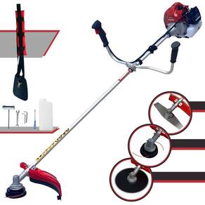 Com guidão ergonômico lateral, permite um alcance amplo e maior mobilidade, capaz de aumentar a produtividade diária. Possui motor 2 tempos á gasolina, de 43 Cilindradas; 1,7HP de potência que proporcionam maior performance e economia na operação. Seu conjunto de acessórios inclui kit de ferramentas, cinto de suporte almofadado, carretel de nylon e lâmina de corte 3 pontas.