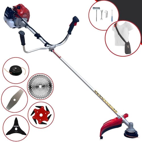 Com guidão ergonômico lateral, permite um alcance amplo e maior mobilidade, capaz de aumentar a produtividade diária. Possui motor 2 tempos á gasolina, de 52 Cilindradas; 2,5HP de potência que proporcionam maior performance e economia na operação. Seu conjunto de acessórios inclui kit de ferramentas, cinto de suporte almofadado, carretel de nylon e lâmina de corte 3 pontas.