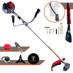 Com guidão ergonômico lateral, permite um alcance amplo e maior mobilidade, capaz de aumentar a produtividade diária. Possui motor 2 tempos á gasolina, de 62 Cilindradas; 3HP de potência que proporcionam maior performance e economia na operação. Seu conjunto de acessórios inclui kit de ferramentas, cinto de suporte almofadado, carretel de nylon e lâmina de corte 3 pontas.