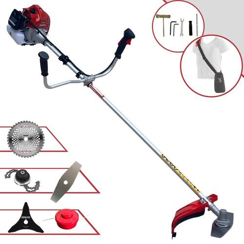 Com guidão ergonômico lateral, permite um alcance amplo e maior mobilidade, capaz de aumentar a produtividade diária. Possui motor 2 tempos á gasolina, de 62 Cilindradas; 3HP de potência que proporcionam maior performance e economia na operação. Seu conjunto de acessórios inclui kit de ferramentas, cinto de suporte almofadado, carretel de nylon e lâmina de corte 3 pontas.