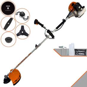 Roçadeira À Gasolina Terra GRHB430 Bi-Partida 43cc 1,7HP Multifunções Com Carretel Nylon + Lâmina Facão + Lâmina 3 Pontas + Lâmina 80 Dentes + Trimmer