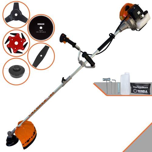 Roçadeira Lateral Terra GRHB-430 Bipartida À Gasolina 2 Tempos 43cc 1,7HP + Faca 3 Pontas + Faca 80 Pontas + Faca 6 Pontas 250mm