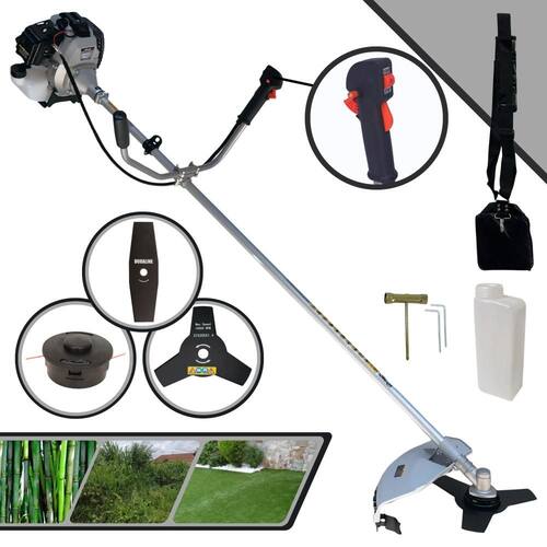 Com guidão ergonômico lateral, permite um alcance amplo e maior mobilidade, capaz de aumentar a produtividade diária. Possui motor 2 tempos á gasolina, de 42,7 Cilindradas, 12.000 de rotação 1,7HP de potência que proporcionam maior performance e economia na operação.Seu conjunto de acessórios inclui kit de ferramentas, cinto de suporte almofadado, carretel de nylon e lâmina de corte 3 pontas.