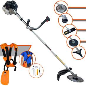 Roçadeira Anmax CG430-B À Gasolina 43cc 1,7HP de Potência 12.000rpm Com Carretel + Faca 2 Pontas + Faca 3 Pontas + Faca 40 Dentes + Faca 80 Dentes