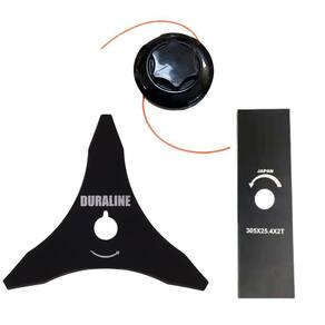 A Faca 3 Pontas da Duraline acompanha um anel de redução, ou seja, pode ser utiizada para roçadeiras de furo 20mm ou 25mm, sendo feita em aço cromo vanádio garante mais segurança, desempenho e durabilidade. As lâminas Duraline são balanceadas, fazendo com que haja menor vibração, corte contínuo e suave, com mais conforto ao operador e mais longevidade para a roçadeira. As lâminas duraline apresentam maior rendimento no trabalho e não precisam ser afiadas antes do uso. A faca 3 pontas pode ser aplicada para diferentes trabalhos, tendo em vista que é e Ideal trabalhos profissionais, podendo cortar em diferentes situações: Terenos com galhos, Mato Alto, Capim Grosso e Capoeira.