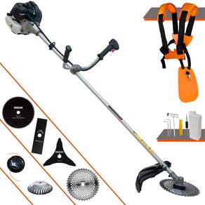 Roçadeira Lateral ANMAX CG430B À Gasolina 2 Tempos 43cc 1,7HP + Faca 3 Pontas 255m + Faca 40 Dentes 255mm + Faca 80 Dentes 255mm + Escova 38 Cerdas