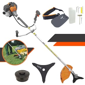 Com guidão ergonômico lateral, permite um alcance amplo e maior mobilidade, capaz de aumentar a produtividade diária. Possui motor 2 tempos á gasolina, de 51,6 Cilindradas (52cc) de rotação 2,0 de potência que proporcionam maior performance e economia na operação. Seu conjunto de acessórios inclui kit de ferramentas, cinto de sustentação, carretel de nylon e lâmina de corte 3 pontas.