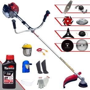 Roçadeira À Gasolina Kawashima BCJ 431L 42,7CC 1,7HP 2T + Faca 3 Pontas + Faca 6 Pontas + Faca 40 Dentes + Faca 80 Dentes + Trimmer + Escova 38 Cerdas + Óleo Toyama FG50 500ml + Kit EPI Completo