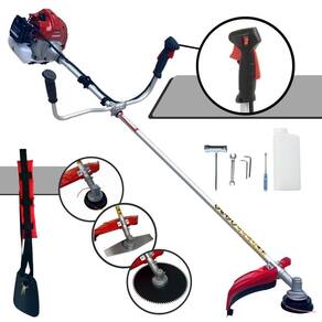 Com guidão ergonômico lateral, permite um alcance amplo e maior mobilidade, capaz de aumentar a produtividade diária. Possui motor 2 tempos á gasolina, de 52 Cilindradas; 2,5HP de potência que proporcionam maior performance e economia na operação. Seu conjunto de acessórios inclui kit de ferramentas, cinto de suporte almofadado, carretel de nylon e lâmina de corte 3 pontas.