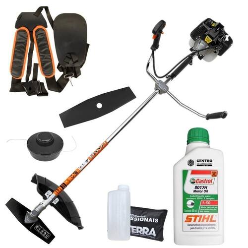 Roçadeira Lateral Terra GRH520 Black À Gasolina 2 Tempos 52cc 2,5 + Óleo Castrol Stihl 2T 500ml
