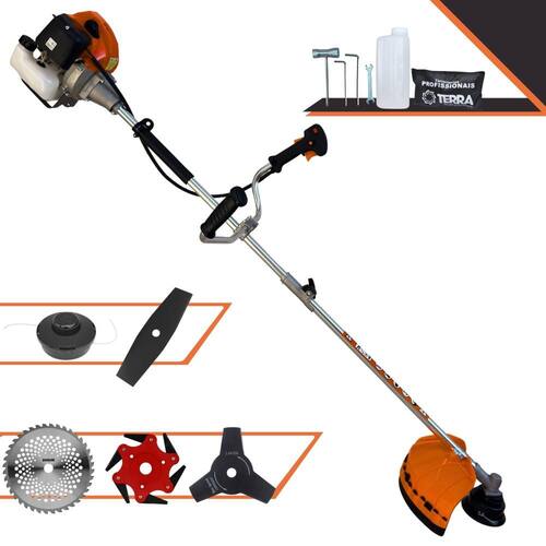 Roçadeira Completa À Gasolina Terra GRHB-430 Bipartido 1,7HP 43cc 12.000rpm Com Carretel e Facas 2 Pontas + 3 Pontas + 6 Pontas + 40 Dentes de Vídea