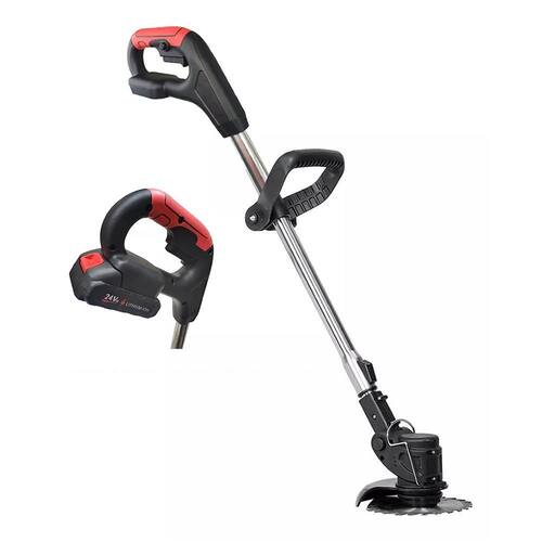 Cortador de Grama Comprimento ajustável Recarregável Botão de segurança Botão na base para ajustar o ângulo Tempo de carregamento aproximadamente: 2 até 3 horas Duraçao aproximadamente: 3 até 4 horas Potencia: 180W Tensao: AC100-240V 50/60Hz Bivolt Saida: 12.6V Bateria de lítio 24V Velocidade: 18000 rpm Material: Polipropileno e alumínio