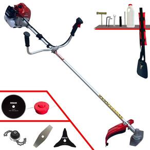 Com guidão ergonômico lateral, permite um alcance amplo e maior mobilidade, capaz de aumentar a produtividade diária. Possui motor 2 tempos á gasolina, de 62 Cilindradas; 3HP de potência que proporcionam maior performance e economia na operação. Seu conjunto de acessórios inclui kit de ferramentas, cinto de suporte almofadado, carretel de nylon e lâmina de corte 3 pontas.