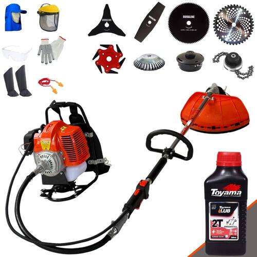 Roçadeira Costal Terra GRC430 À Gasolina 43cc 1,7HP 2T Com Faca 40 Dentes e Carretel + Kit de Facas (2P, 3P, 80D, 6PT, Escova e Trimmer) + Kit de EPI Completo + Óleo TOYAMA LUB FG50 500ml 2T