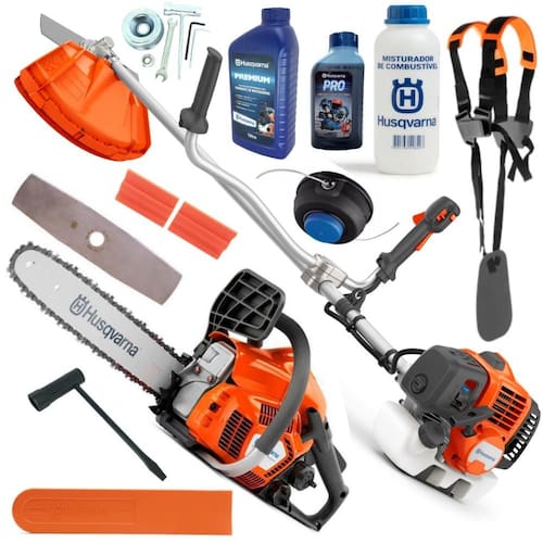 Kit Acompanha 01 Misturador de combustível (Capacidade 1 Litro) 01 Óleo 2 Tempos PRO 50:1 (Frasco 200ml) 01 Oleo para Corrente de motosserra (Frasco 1 Litro) 01 Faca 2 Pontas 330-2 (Aço Sueco) 01 Carretel para Nylon Automatico T35 01 Protedor de Lâmina 01 Cinto de sustentação Duplo 01 Kit Ferramentas