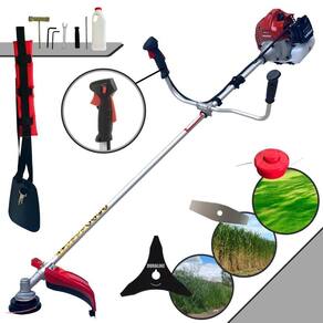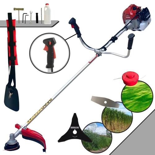 Com guidão ergonômico lateral, permite um alcance amplo e maior mobilidade, capaz de aumentar a produtividade diária. Possui motor 2 tempos á gasolina, de 62 Cilindradas; 3HP de potência que proporcionam maior performance e economia na operação. Seu conjunto de acessórios inclui kit de ferramentas, cinto de suporte almofadado, carretel de nylon e lâmina de corte 3 pontas.