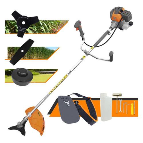 Com guidão ergonômico lateral, permite um alcance amplo e maior mobilidade, capaz de aumentar a produtividade diária. Possui motor 2 tempos á gasolina, de 51,6 Cilindradas (52cc) 10.000 de rotação 2,0 HP de potência que proporcionam maior performance e economia na operação. Seu conjunto de acessórios inclui kit de ferramentas, cinto de sustentação, carretel de nylon e lâmina de corte 3 pontas.