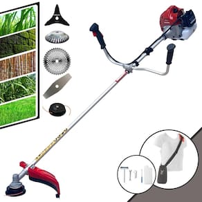 Com guidão ergonômico lateral, permite um alcance amplo e maior mobilidade, capaz de aumentar a produtividade diária. Possui motor 2 tempos á gasolina, de 43 Cilindradas; 1,7HP de potência que proporcionam maior performance e economia na operação. Seu conjunto de acessórios inclui kit de ferramentas, cinto de suporte almofadado, carretel de nylon e lâmina de corte 3 pontas.