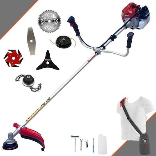 Com guidão ergonômico lateral, permite um alcance amplo e maior mobilidade, capaz de aumentar a produtividade diária. Possui motor 2 tempos á gasolina, de 52 Cilindradas; 2,5HP de potência que proporcionam maior performance e economia na operação. Seu conjunto de acessórios inclui kit de ferramentas, cinto de suporte almofadado, carretel de nylon e lâmina de corte 3 pontas.