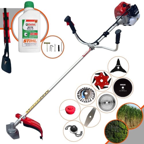 Com guidão ergonômico lateral, permite um alcance amplo e maior mobilidade, capaz de aumentar a produtividade diária. Possui motor 2 tempos á gasolina, de 62 Cilindradas; 3HP de potência que proporcionam maior performance e economia na operação. Seu conjunto de acessórios inclui kit de ferramentas, cinto de suporte almofadado, carretel de nylon e lâmina de corte 3 pontas.