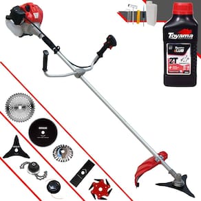 Roçadeira Lateral ANMAX CG520P À Gasolina 2 Tempos 52cc 2,2HP + Faca 3 Pontas 255m + Faca 40 Dentes 255mm + Faca 80 Dentes 255mm + Trimmer + Escova Rotativa 24 cerdas + Faca 6 Pontas + Óleo TOYAMA LUB FG50 500ml 2T
