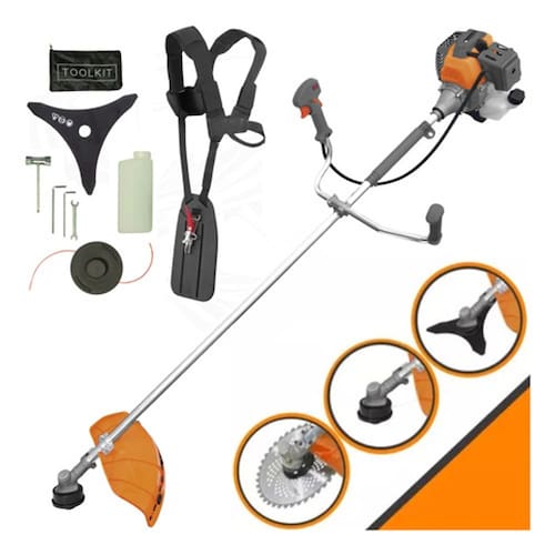 Com guidão ergonômico lateral, permite um alcance amplo e maior mobilidade, capaz de aumentar a produtividade diária. Possui motor 2 tempos á gasolina, de 51,6 Cilindradas (52cc) 10.000 de rotação 2,0 HP de potência que proporcionam maior performance e economia na operação. Seu conjunto de acessórios inclui kit de ferramentas, cinto de sustentação, carretel de nylon e lâmina de corte 3 pontas.