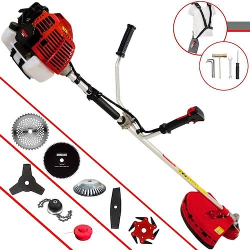 Roçadeira Profissional Lateral Kawashima KW52-L À Gasolina 2T 52c 2,5HP Com Lâmina 3 Pontas + Faca 2 Pontas 330mm + Faca 40 Dentes 255mm + Faca 80 Dentes 255mm + Faca 6 Pontas 250mm + Escova Rotativa 38 Cerdas 200mm + Trimmer