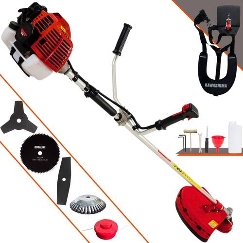 A Roçadeira Kawashima KW43L conta com motor 2 tempos à gasolina, 43 cilindradas e potência de 1,7HP. Projetada para facilitar o trabalho de roçada de capim, arbustos, pastagens, controle de pastos, trabalhos de jardinagem, limpeza e manutenção de grandes áreas verdes com sua utilização em sítios; fazendas e chácaras. Ideal também para manutenção e limpeza de vias públicas e rodovias. Desenvolvida com uma estrutura resistente e suporte do guidão reforçado, seus componentes possuem alta durabilidade. A vantagem da roçadeira é que pode ser usada em locais irregulares, morros, buracos, florestas, entre outro com dificuldade de acesso.