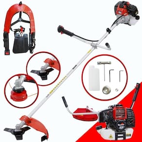 Com guidão ergonômico lateral, permite um alcance amplo e maior mobilidade, capaz de aumentar a produtividade diária. Possui motor 2 tempos á gasolina, de 43 Cilindradas, 10.000 de rotação 1,7HP de potência que proporcionam maior performance e economia na operação. Seu conjunto de acessórios inclui kit de ferramentas, cinto de suporte duplo almofadado, carretel de nylon e lâmina de corte 3 pontas.