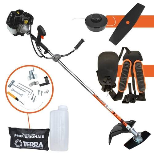 Marca: Terra | Com sistema antivibração: Não | Modelo: GRH520 | Motivo de GTIN vazio: O produto é um kit ou pack | Capacidade do tanque de óleo: N/A | Tipo de guiador: Aberto | Fonte do produto: N/A | Com regulação de guiador: Sim | Sistema de partida: Manual | Comprimento total: 180cm | Com guarda de : Sim | MPN: 84678900 | Capacidade do tanque de combustível: 1,2L | Diâmetro de corte do disco de corte: 255mm | Largura total: 40cm | Tempos do motor: 2 | Eixo de transmissão: Reto | Peso: 11kg | Tipos de máquinas: Roçadeira | Potência do motor: 2,5HP | Cilindrada: 52cc | Tipo de eixo da máquina: Reto | Diâmetro de corte da tanza: 255mm | Sistemas de corte: Faca e Carretel de Nylon | SKU: GRH520 | Acessórios incluídos: Kit ferramentas, cinto de , misturador de combustível | Condição do item: | É kit: Não | Código universal de produto: 7908311802173