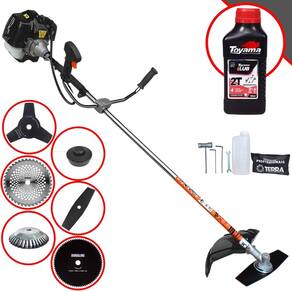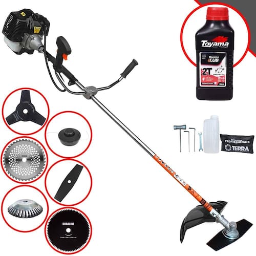 Roçadeira Lateral Terra GRH-520 Black À Gasolina 2 Tempos 52cc 2,5HP + Faca 3 Pontas 255mm 2,9mm + Faca 40 Pontas 255mm 2mm + Faca 80 Pontas 255mm 1,5mm + Escova Rotativa 200mm 38 Cerdas + ÓLEO TOYAMA LUB FG50 500ml 2T