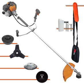 Roçadeira Lateral Tekna RL520P Plus Á Gasolina 2T 52cc 2HP + Faca 80 Dentes 255mm 1,5mm + Escova Rotativa 38 Cerdas 200mm