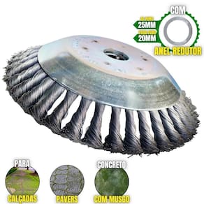 A Escova rotativa da Duraline acompanha um anel de redução, ou seja, pode ser utilizada para roçadeiras de furo 20mm ou 25mm, tendo as cerdas feitas em aço garante mais segurança, desempenho e durabilidade. A Escova Rotativa Duraline é balanceada, fazendo com que haja menor vibração, corte contínuo e suave, com mais conforto ao operador e mais longevidade para a roçadeira. A escova é do modelo côncavo, assim facilitando o seu uso durante o manuseio. A Escova pode ser aplicada para diferentes trabalhos, dentre elas: Limpeza de pavers, limpeza de calçadas, limpeza de concreto, limpeza de pavimentos, remoção de Musgos e remoção de ervas daninhas