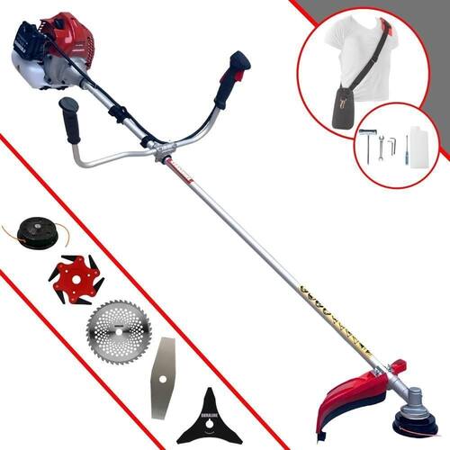 Com guidão ergonômico lateral, permite um alcance amplo e maior mobilidade, capaz de aumentar a produtividade diária. Possui motor 2 tempos á gasolina, de 52 Cilindradas; 2,5HP de potência que proporcionam maior performance e economia na operação. Seu conjunto de acessórios inclui kit de ferramentas, cinto de suporte almofadado, carretel de nylon e lâmina de corte 3 pontas.