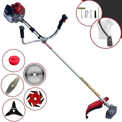 Com guidão ergonômico lateral, permite um alcance amplo e maior mobilidade, capaz de aumentar a produtividade diária. Possui motor 2 tempos á gasolina, de 62 Cilindradas; 3HP de potência que proporcionam maior performance e economia na operação. Seu conjunto de acessórios inclui kit de ferramentas, cinto de suporte almofadado, carretel de nylon e lâmina de corte 3 pontas.