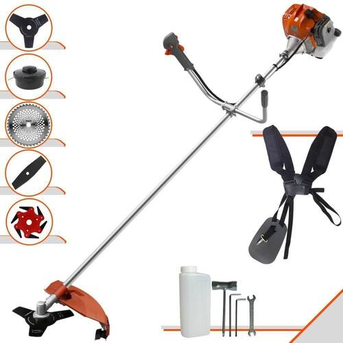 Com guidão ergonômico lateral, permite um alcance amplo e maior mobilidade, capaz de aumentar a produtividade diária. Possui motor 2 tempos á gasolina, de 42,7 Cilindradas (43cc) 9.000 de rotação 1,7HP de potência que proporcionam maior performance e economia na operação. Seu conjunto de acessórios inclui kit de ferramentas, cinto de suporte duplo almofadado, carretel de nylon e lâmina de corte 3 pontas.