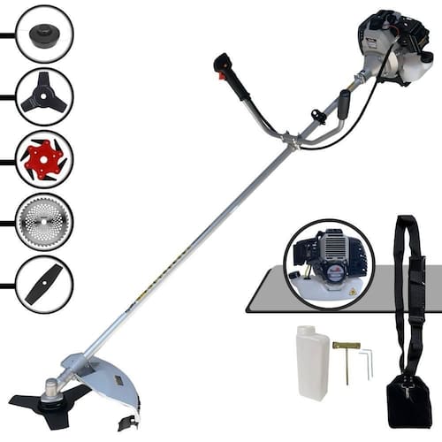 Com guidão ergonômico lateral, permite um alcance amplo e maior mobilidade, capaz de aumentar a produtividade diária. Possui motor 2 tempos á gasolina, de 42,7 Cilindradas, 12.000 de rotação 1,7HP de potência que proporcionam maior performance e economia na operação. Seu conjunto de acessórios inclui kit de ferramentas, cinto de suporte almofadado, carretel de nylon e lâmina de corte 3 pontas.
