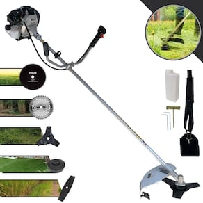 Com guidão ergonômico lateral, permite um alcance amplo e maior mobilidade, capaz de aumentar a produtividade diária. Possui motor 2 tempos á gasolina, de 42,7 Cilindradas, 12.000 de rotação 1,7HP de potência que proporcionam maior performance e economia na operação. Seu conjunto de acessórios inclui kit de ferramentas, cinto de suporte almofadado, carretel de nylon e lâmina de corte 3 pontas.