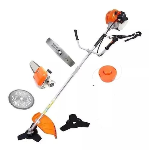 Roçadeira multifuncional á gasolina 3hp 63cc + motopoda Tempos do motor: 2 Cilindrada: 63 cc Potência do motor: 3 hp Capacidade do tanque de combustível: 1 cc Capacidade do tanque de óleo: 25 ml Descrição Roçadeira Robusta e com estrutura resistente Equipada com empunhadura emborracha que proporciona conforto na operação Conjunto de fixação do guidão e de fácil ajuste pelo operador Sistema de arranque com redução de impacto proporcionar menor esforço na hora do arranque e maior vida útil do sistema Equipada com um motor 2 tempos à gasolina Garante uma manutenção fácil e rápida Indicada para trabalhos profissionais de maior intensidade Ideal para limpeza de áreas com vegetação densa e alta, como sítios e fazendas - pode ser acoplada com enxada rotativa Acessórios inclusos: - lamina 3 pontas - carretel de naylon - alça de suporte - medidor de gasolina e óleo - kit de ferramentas montagem da maquina Motopodador de cerca -óleo sthil - lamina 6 pontas Especificações técnicas: - tipo transmissão: embreagem automática centrifuga, eixo rígido - relação de redução: 16 : 19 - rotação das lâminas de corte: sentido anti-horário visto pelo operário - capacidade do depósito de combustível: 1,1 litros - motor: Tipo: 1e40f-5d Volume de deslocamento de ar: 65 cc Potência máxima: 2,238 kw / 9000 rpm - 3hp Carburador: tipo diafragmamétodo ignição: tci Método de arranque: recoil Lubrificante: óleo para motores de 2 tempos Combustível: gasolina mistura com óleo lubrificante relação de mistura 25:1 A roçadeira é enviada desmontada para acomodação das partes pela transporta A montagem é de responsabilidade do cliente e é necessário efetuar ao receber o produto. Caso tenha dificuldades, solicite pelo chat vídeo de suporte. : Não cobre defeitos por mau uso ou pela montagem / revisão inadequada do produto. A será validada para as montadas e revisadas por uma oficina especializada e é referente apenas ao primeiro proprietário. A não se aplica para os itens de desgaste natural. É recomendado montagem de um profissional ou após assistir o vídeo de instrução encaminhado pela empresa. Marca: Não Informado
