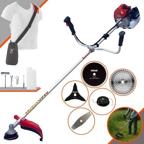 Com guidão ergonômico lateral, permite um alcance amplo e maior mobilidade, capaz de aumentar a produtividade diária. Possui motor 2 tempos á gasolina, de 43 Cilindradas; 1,7HP de potência que proporcionam maior performance e economia na operação.Seu conjunto de acessórios inclui kit de ferramentas, cinto de suporte almofadado, carretel de nylon e lâmina de corte 3 pontas.