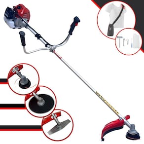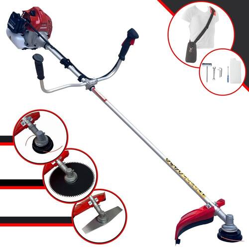 Com guidão ergonômico lateral, permite um alcance amplo e maior mobilidade, capaz de aumentar a produtividade diária. Possui motor 2 tempos á gasolina, de 43 Cilindradas; 1,7HP de potência que proporcionam maior performance e economia na operação. Seu conjunto de acessórios inclui kit de ferramentas, cinto de suporte almofadado, carretel de nylon e lâmina de corte 3 pontas.