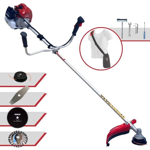 Com guidão ergonômico lateral, permite um alcance amplo e maior mobilidade, capaz de aumentar a produtividade diária. Possui motor 2 tempos á gasolina, de 52 Cilindradas; 2,5HP de potência que proporcionam maior performance e economia na operação. Seu conjunto de acessórios inclui kit de ferramentas, cinto de suporte almofadado, carretel de nylon e lâmina de corte 3 pontas.