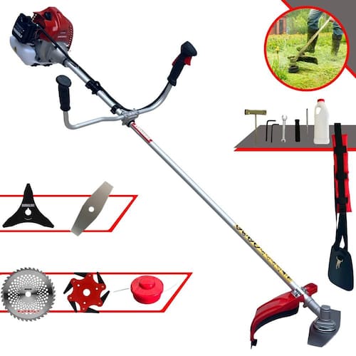 Com guidão ergonômico lateral, permite um alcance amplo e maior mobilidade, capaz de aumentar a produtividade diária. Possui motor 2 tempos á gasolina, de 62 Cilindradas; 3HP de potência que proporcionam maior performance e economia na operação. Seu conjunto de acessórios inclui kit de ferramentas, cinto de suporte almofadado, carretel de nylon e lâmina de corte 3 pontas.